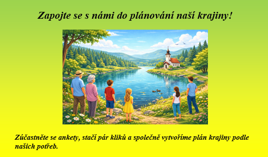 Děkujeme, že se zapojujete do plánování krajiny v našem regionu. Společně můžeme vytvořit příjemnější, udržitelnější a odolnější prostředí pro nás i budoucí generace.